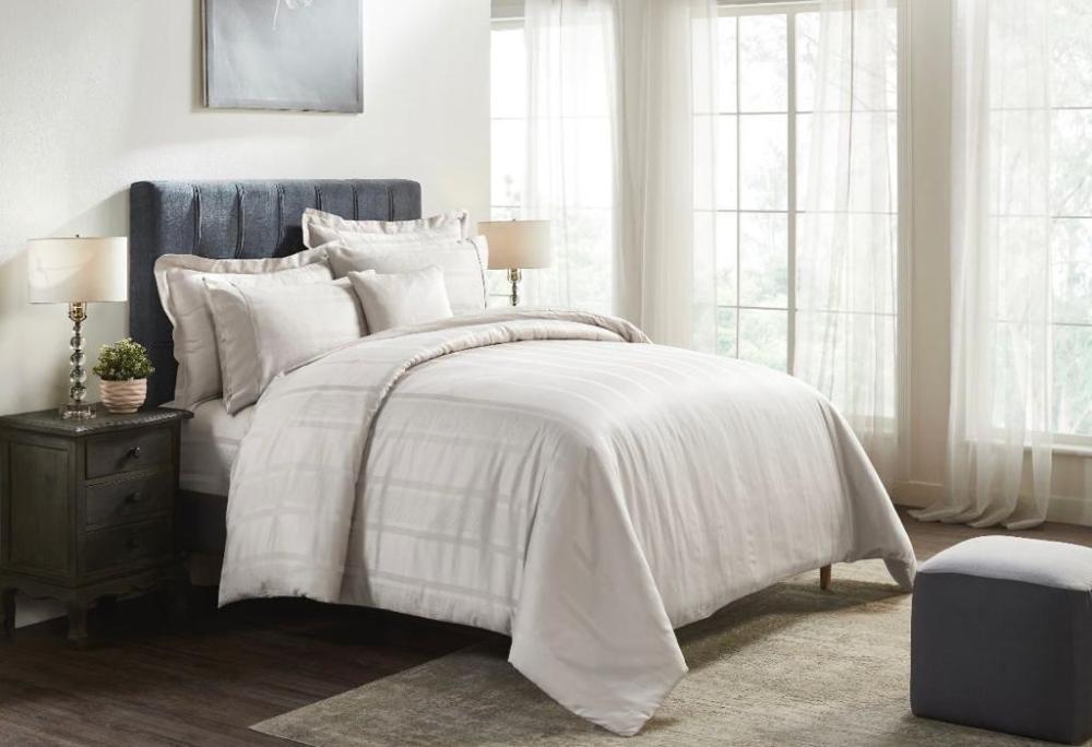 مفرش سرير فاخر قطن 100% بتصميم كلاسيكي أنيق لون بيج فاتح